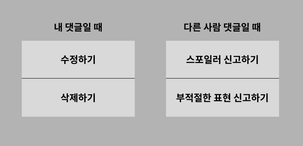 1. 문제상황댓글 안에 있는 드롭다운 버튼을 클릭했을 때 Input 이벤트 로직을 정의하고 있었다. 드롭다운 내에는 top, bottom 두개의 버튼이 들어가있고, 내 댓글인지 아닌지의 여부도 반영하면 총 4가지의 분기처리를 해주어야 했다. Input { let commentDropdownDidTap: Observable}Output { let showCommentSpoilerAlertView: Observable Observable, Int)> let showCommentImproperAlertView: Observable Observable, Int)> let myCommentEditing: Observable let showCommentDeleteAlertView: Observabl..